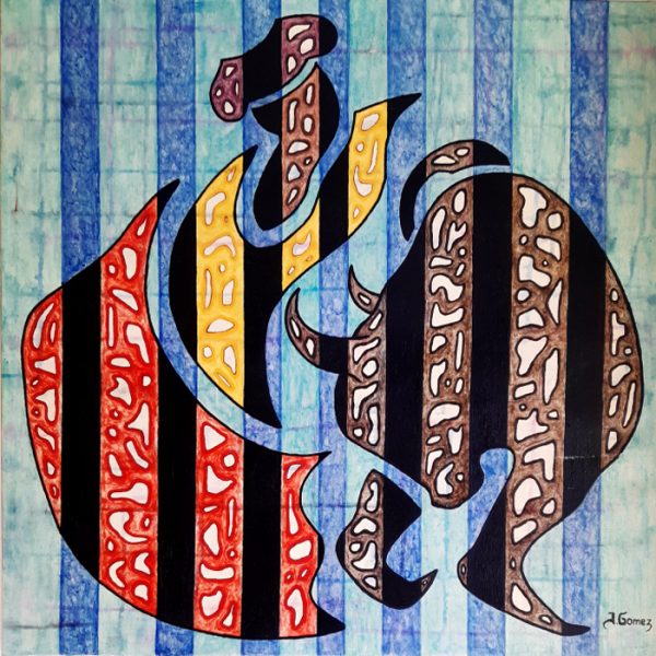 J’utilise une large palette de couleur ou le rouge, le bleu, le jaune, le vert, le violet et l’orange domine dans une grande partie de mes tableaux. Pour d’autre, je multiplient les nuances de différentes couleurs. L’originalité de mes tableaux est  du à la transparence des aplats, se qui donne en les superposant une impression de volume et de lumière intérieure.