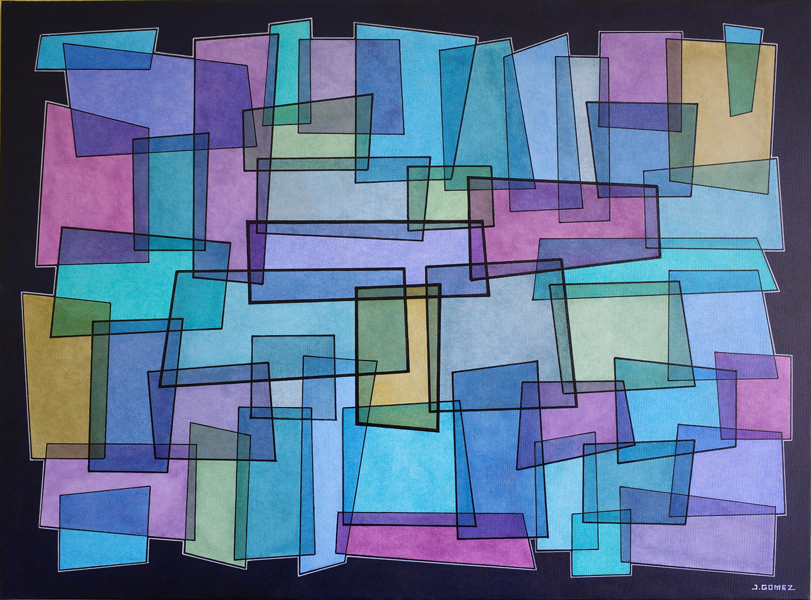 J’utilise une large palette de couleur ou le rouge, le bleu, le jaune, le vert, le violet et l’orange domine dans une grande partie de mes tableaux. Pour d’autre, je multiplient les nuances de différentes couleurs. L’originalité de mes tableaux est  du à la transparence des aplats, se qui donne en les superposant une impression de volume et de lumière intérieure.
